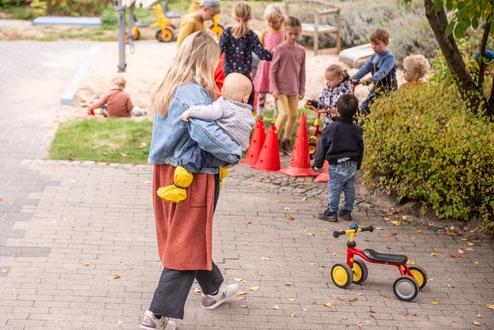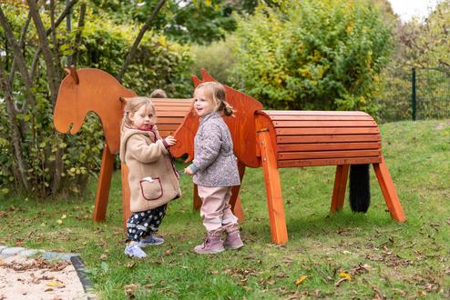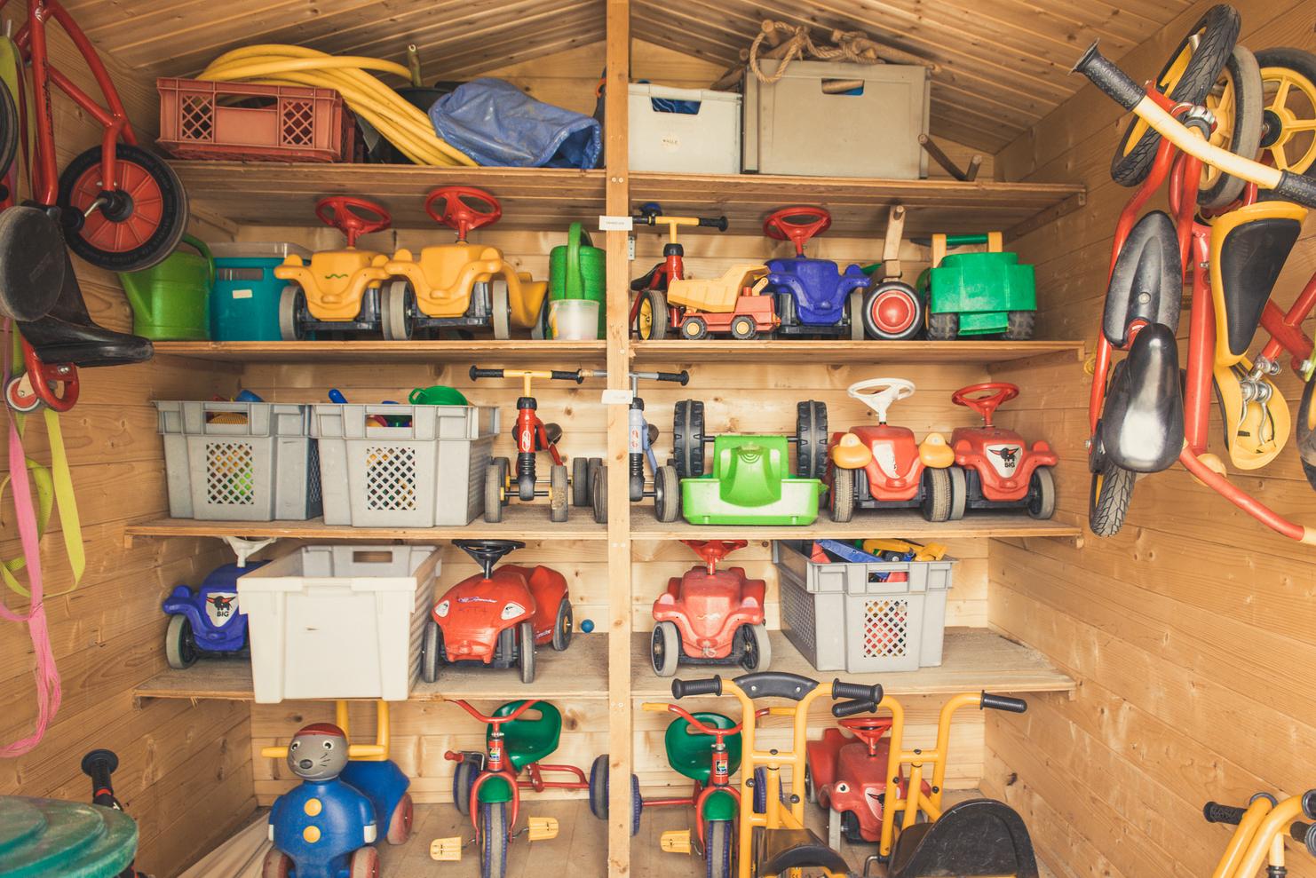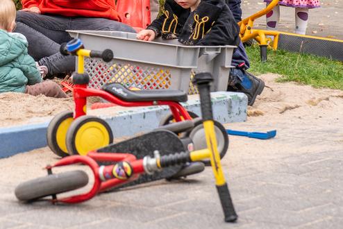 Der große Garten lädt zum Fahren mit Rutschauto, Laufrädern und Rollern ein. Die Kinder können dabei aus einem großen "Fuhrpark" wählen. Wer lieber im Sand spielen, schaukeln oder rutschen möchte, hat dazu viele Möglichkeiten.